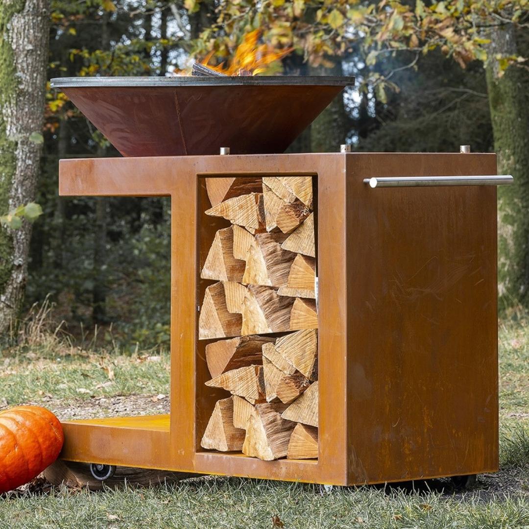 Votre plancha moduleo Bûche comporte un grand espace de stockage dédié au rangement du bois.